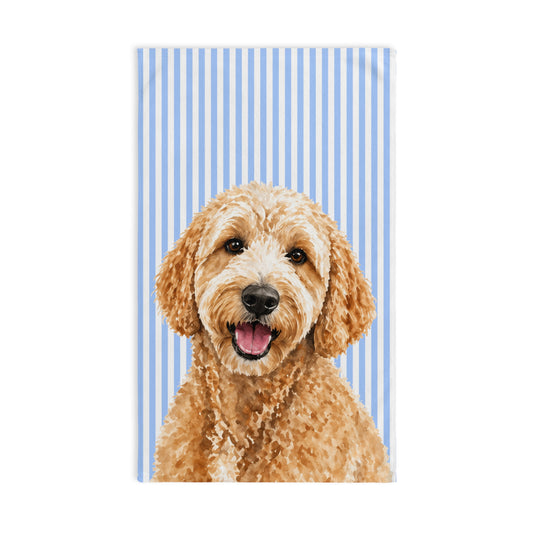 Custom Pet Portrait Hand Towel, Personalized Watercolor Dog Cat Photo Striped Guest Bath Bathroom Spa Tea Cotton Kitchen Gift Her Women