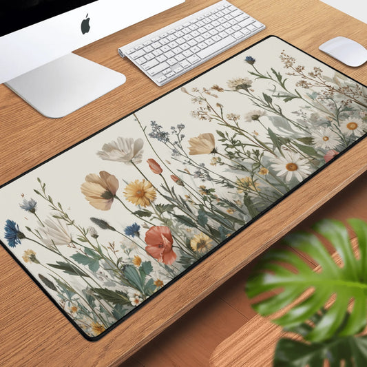 Wildflowers Desk Mat, Cottagecore Floral Gaming Mouse Pad Art Small Extra Large Wide Big XL Long Keyboard Unique Office Computer Laptop