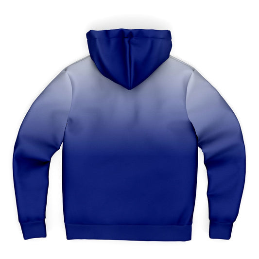 Blue White Ombre Zip Up Fleece Lined Hoodie, Tie Dye Gradient Heavyweight Full Zipper Pocket Men Women Unisex Hooded Sweatshirt Jacket
