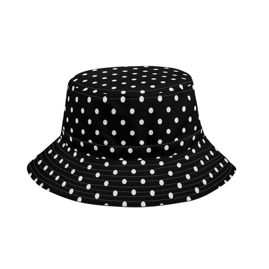 Black Polka Dots Bucket Hat with String, White Retro Vintage Summer Festival Cute Cap Women Men Kids Golf Fisher Designer Beach Sun Shade