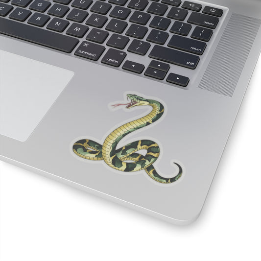 Snake Sticker Decal, Green Animal Reptile Watercolor Art Vinyl Laptop Cute Waterbottle Tumbler Car Waterproof Bumper Clear Die Cut Wall