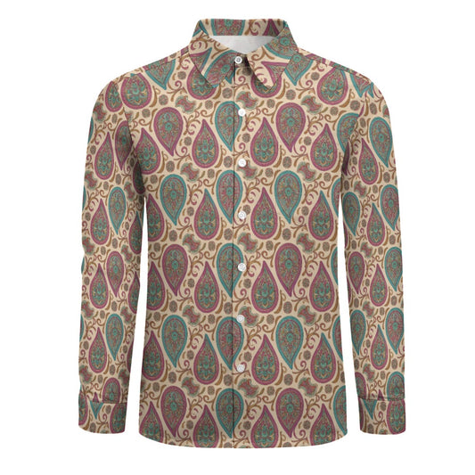 Paisley Long Sleeve Men Button Up Shirt, Vintage Retro Guys Male Print Buttoned Down Collared Graphic Casual Dress Plus Size Chest Pocket