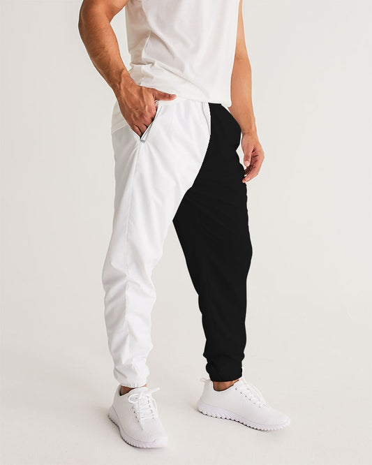 Half Black Half White Men Track Pants, Two Tone Split Color Block Zip Pockets Dry Mesh Lining Lightweight Elastic Waist Tracksuit Joggers