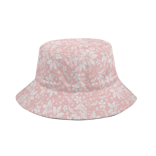 Pink White Floral Bucket Hat with String, Flowers Retro Vintage Summer Festival Cute Cap Women Men Kids Golf Fisher Designer Beach Sun Shade