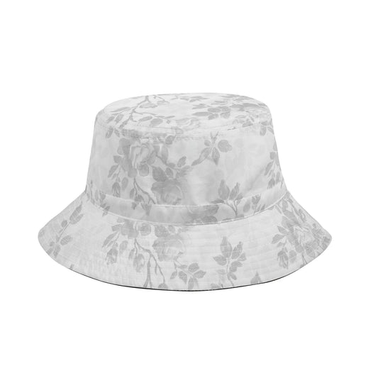 White Floral Bucket Hat with String, Flowers Retro Vintage Summer Festival Cute Cap Women Men Kids Golf Fisher Designer Beach Sun Shade