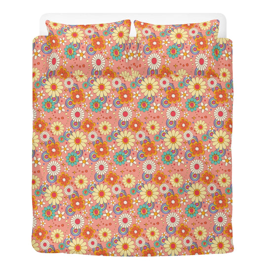 Vintage Floral Bedding Set (3pcs), Retro pink One Duvet Cover and Two Pillow Covers California King Queen Full Twin Size Bed Bedroom Decor