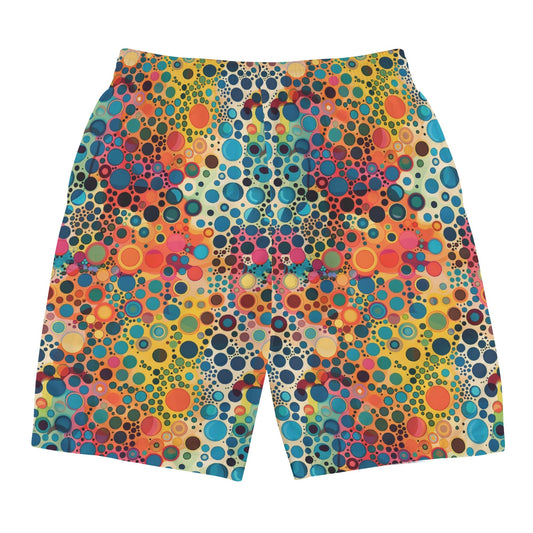 Psychedelic Men Swim Trunks, Colorful Party Print Mid Length Shorts Beach Surf Swimwear Male Pockets Drawstring Bathing Suit Board Summer
