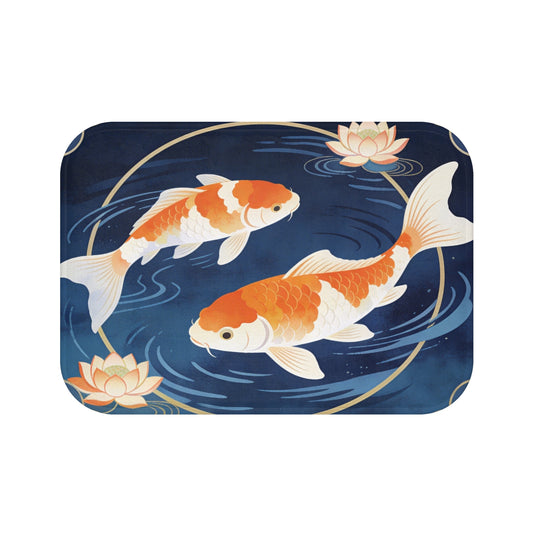 Koi Fish Bath Mat, Japanese Quick Dry Luxury Shower Bathroom Decor Non Slip Memory Foam Microfiber Large Small Washable Absorbent Rug