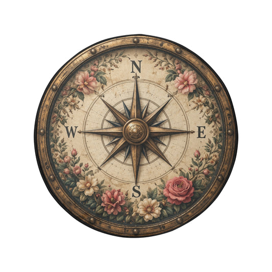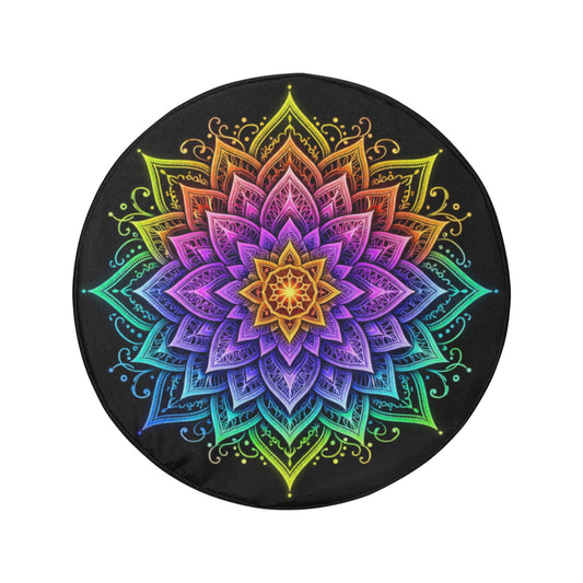 Flower Boho Compass Rose Spare Tire Wheel Cover, Vintage Floral Navigation Bohemian Back Up Camera Hole Rear Back RV Car Camper Motorhome