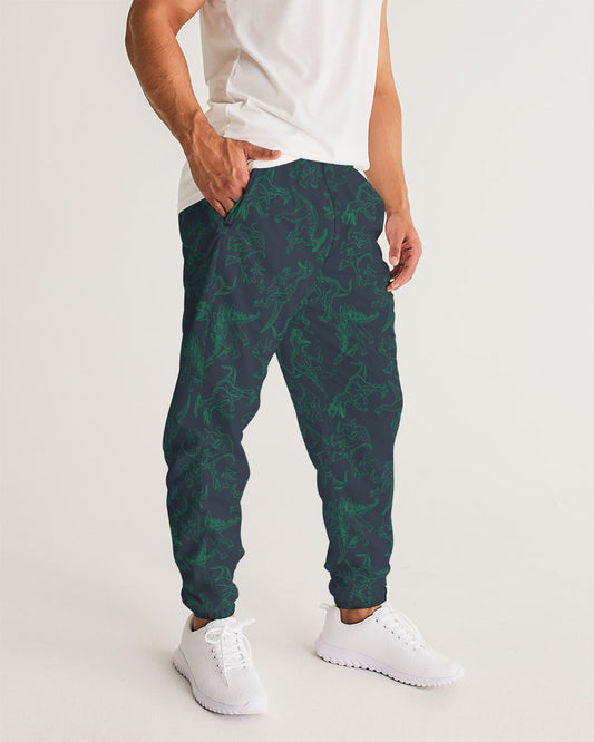 Dino Men Track Pants, Green Dinosaur Zip Pockets Quick Dry Mesh Lining Lightweight Festival Elastic Waist Tracksuit Trousers Joggers Bottoms