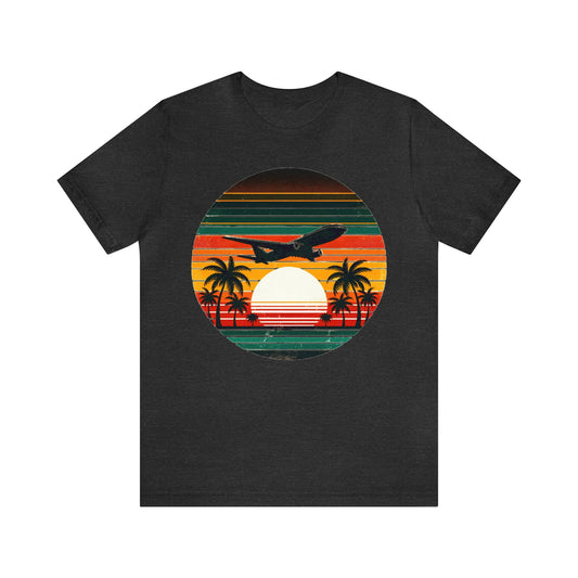 Airplane Tshirt, Vacation Flying 70s Vintage Sunset Travel Trip Airport Designer Graphic Crewneck Men Women Tee Short Sleeve Shirt