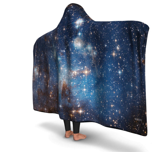 Galaxy Sherpa Hooded Blanket, Stars Outer Space Cosmic Constellation Celestial Fleece Microfleece Adult Youth Men Woman Wearable Winter Gift