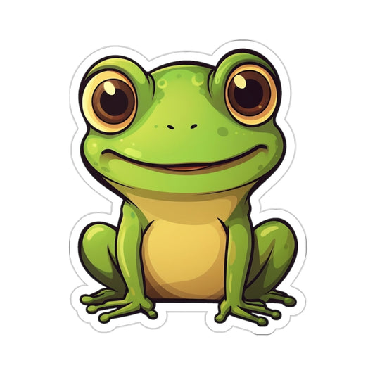 Cute Frog Sticker Decal, Green Animal Art Vinyl Laptop Cute Waterbottle Tumbler Car Waterproof Bumper Clear Aesthetic Die Cut Wall