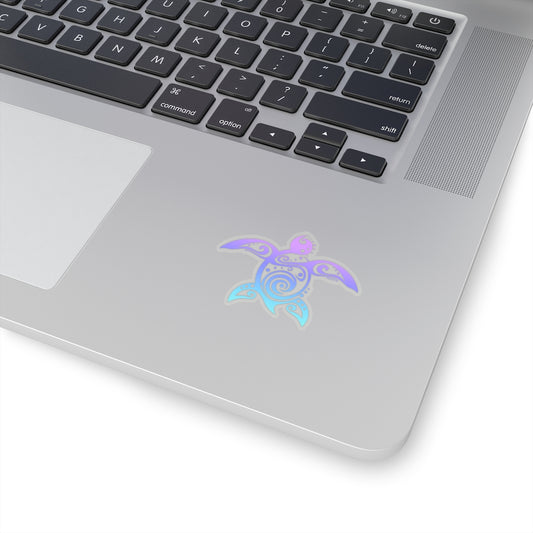 Tribal Sea Turtle Decal, Ocean Violet Blue Hawaiian Waves Gradient Ombre Die Cut Stickers Laptop Vinyl Cute Waterbottle Car Aesthetic
