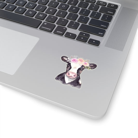 Cow Flowers Sticker, Watercolor Farm Floral Animal Laptop Decal Vinyl Cute Waterbottle Tumbler Car Waterproof Aesthetic Die Cut Wall Mural