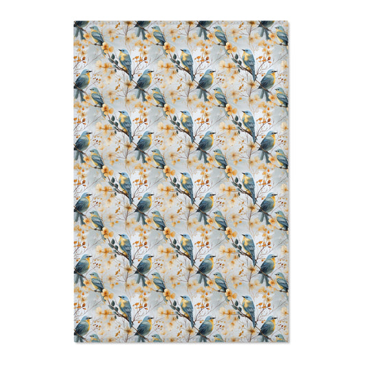 Birds Area Rug Carpet, Floral Animal Home Floor Decor Chic 2x3 4x6 3x5 Designer Kids Nursery Room Accent Decorative Bedroom Mat