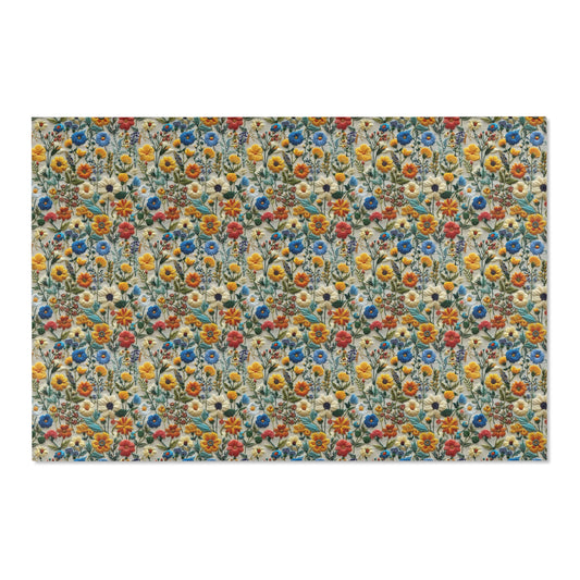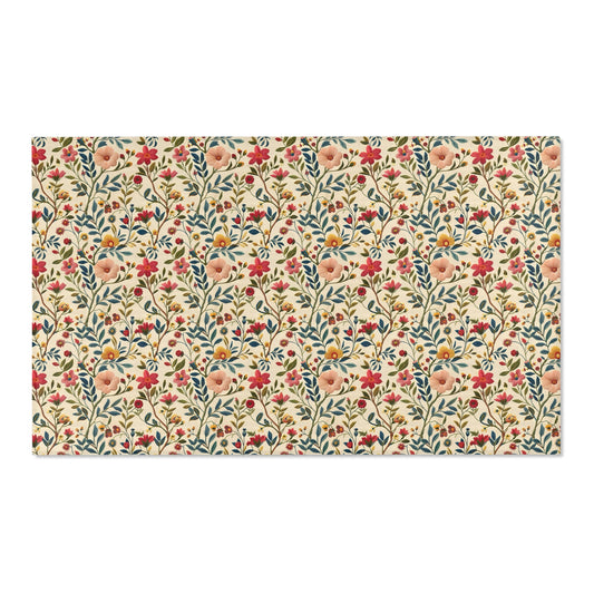 Floral Area Rug Carpet, Faux Embroidery Cottagecore Washable American Living Floor Indoor Outdoor 2x3 4x6 3x5 Kitchen Nursery Bedroom Mat