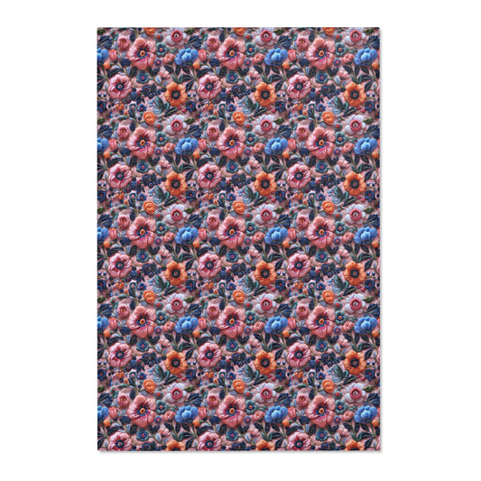 Floral Area Rug Carpet, Faux Embroidery Washable American Living Room Floor Indoor Outdoor 2x3 4x6 3x5 Kitchen Nursery Accent Bedroom Mat