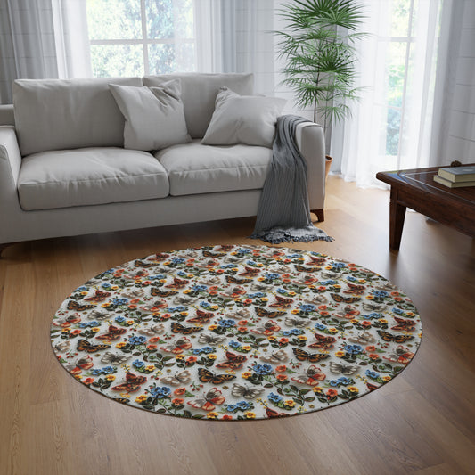 Butterflies Round Area Rug Carpet, Faux Embroidery Washable American Living Room Floor Indoor Outdoor Designer Kids Nursery Bedroom Mat