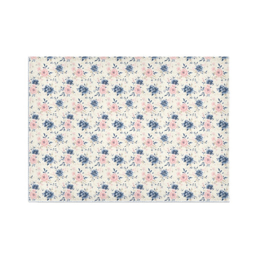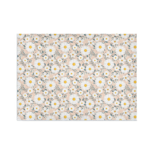 Pink Blue Flowers Area Rug Carpet, White Daisy Pastel Retro Vintage Floral Home Living Dorm Room Floor Decor Interior Accent 5x7 3x5 Mat