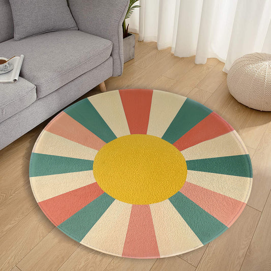 Sun Sunburst Round Area Rug Carpet, Home Floor Decor 2 3 4 5 ft Living Dorm Room Kids Nursery Small Large Design Accent Decorative Mat