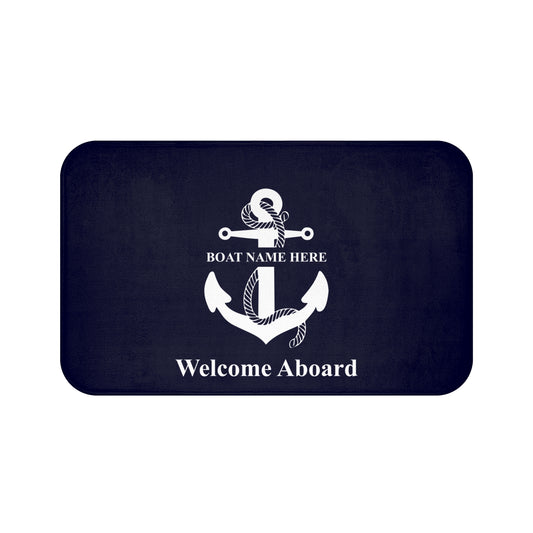 Custom Anchor Welcome Boat Mat, Personalized Nautical Sailing Cabin Deck Non Slip Floor Memory Foam Microfiber Large Small Washable Rug