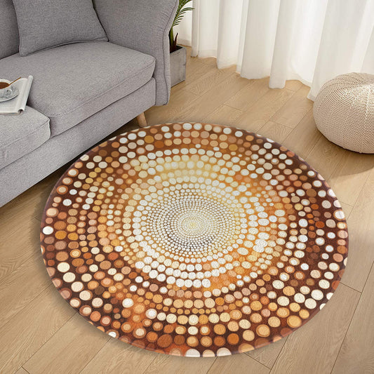 Earthy Brown Dots Round Area Rug Carpet, Circle Art Home Floor Decor 2 3 4 5 ft Living Dorm Room Kids Nursery Small Large Accent Mat