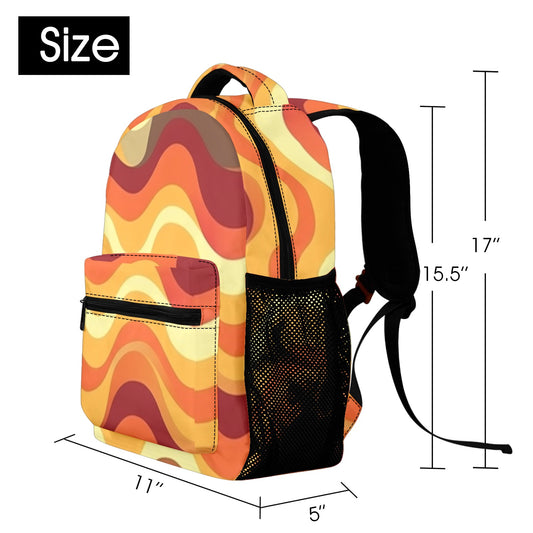 Orange Yellow Backpack, Groovy Striped 70s Men Women Kids Gift School College Cool Waterproof Side Pockets Laptop Designer Aesthetic Bag