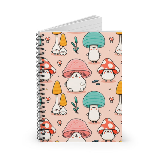Mushroom Pink Blue Spiral Notebook, cute Pattern Design Journal Traveler Notepad Ruled Line Book Paper Pad Work Aesthetic Gift