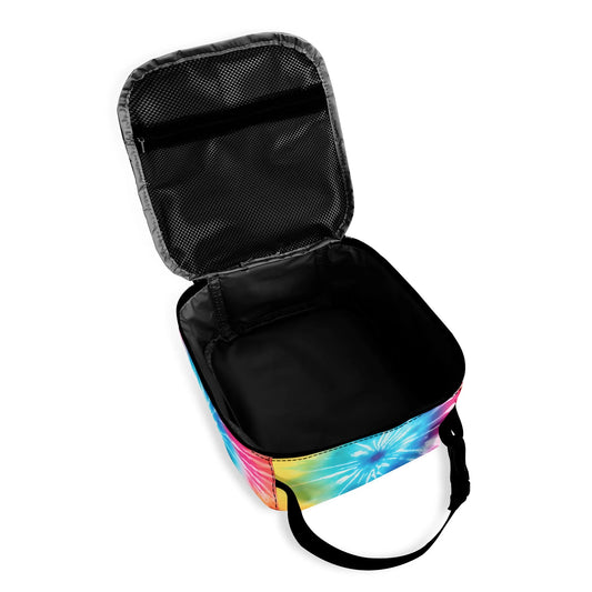 Rainbow Tie Dye Insulated Meal Lunch Box Bag, Colorful Food Container School Ladies Adult Kids Women Teens Men Black School Work Handbag