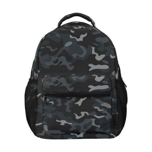 Black Camo Backpack, Camouflage Grey Gray Men Women Kids Gift School College Cool Waterproof Side Pockets Laptop Designer Aesthetic Bag