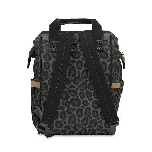 Black Leopard Diaper Bag Backpack, Animal Print Baby Girl Waterproof Insulated Pockets Mom Designer Men Women Multipurpose