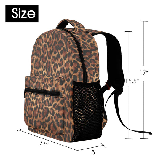 Leopard Backpack, Animal Print Cheetah Brown Men Women Kids Gift School College Cool Waterproof Side Pockets Laptop Designer Aesthetic Bag