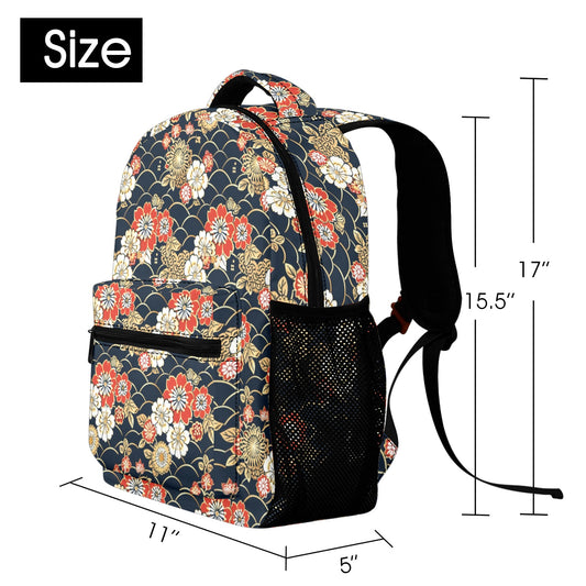 Japanese Backpack, Asian Floral flowers Men Women Kids Gift School College Cool Waterproof Side Pockets Laptop Designer Aesthetic Bag