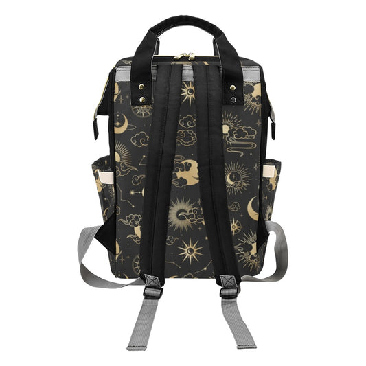 Sun Moon Diaper Bag Backpack, Constellation Stars 70s Baby Girl Waterproof Insulated Pockets Stylish Mom Designer Men Women Multipurpose