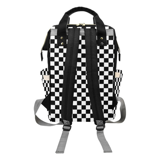 Checkered Diaper Bag Backpack, Black White Check Baby Boy Girl Waterproof Insulated Pockets Stylish Mom Dad Designer Men Women Multipurpose