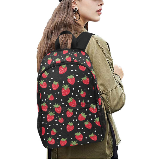 Strawberry Backpack, Red Fruit Black Print Men Women Kids Gift Him Her School College Waterproof Side Mesh Pockets Aesthetic Bag