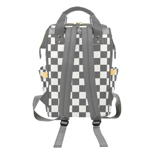 Checkered Diaper Bag Backpack, Grey Cream Check Baby Boy Girl Waterproof Insulated Pockets Stylish Mom Dad Designer Men Women Multipurpose