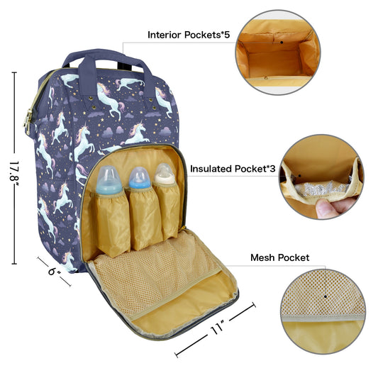 Unicorn Diaper Bag Backpack, Space Stars Luxury Nappy Baby Boy Girl Waterproof Insulated Pockets Stylish Mom Dad Designer Men Ladies Women