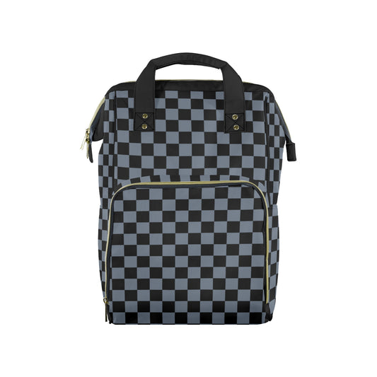 Checkered Diaper Bag Backpack, Black Grey Check Luxury Baby Boy Girl Waterproof Insulated Pockets Stylish Mom Dad Designer Men Ladies Women