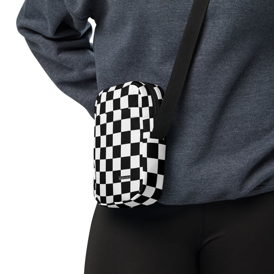 Checkered Crossbody Bag Purse, Black White Check Women Men Phone Small Handbag Shoulder Zipper Ladies Zip Strap Designer Summer Cross Body