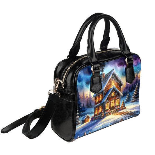Gingerbread House Purse, Christmas Xmas Pattern Cute Small Shoulder Zip Bag Vegan Leather Women Designer Handbag Crossbody Ladies