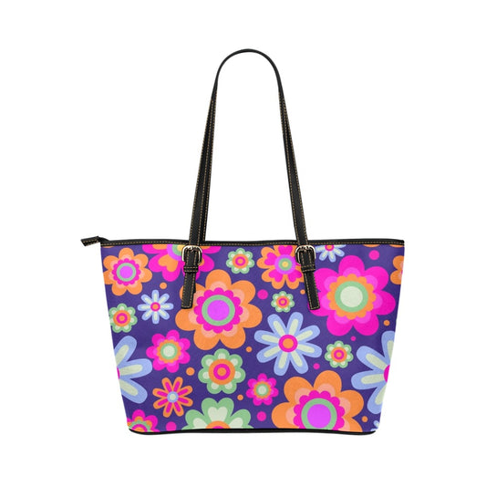 Pink Floral Purse Leather Tote Bag, Groovy 70s Vintage Retro Vegan Shoulder Hand bag Zip on Top Designer Small Large Work Women Ladies