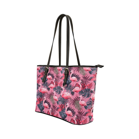 Pink Flamingo Leather Tote Bag, Tropical Purse Small Large Vegan shoulder Zip on Top Designer Women Ladies Work Laptop Handbag
