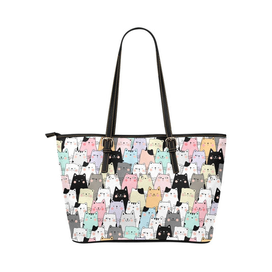 Cat Tote Bag Purse, Cute Kittens Print Handbag Women Vegan Leather Zip Top Small Large Designer Handmade Shoulder Work Ladies Bag