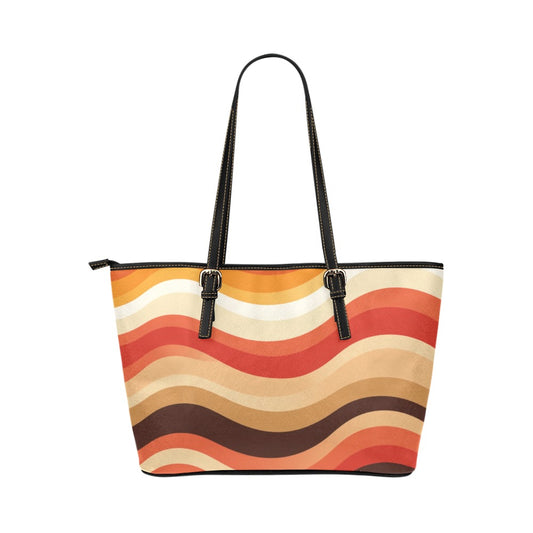 70s Wavy Groovy Purse Leather Tote Bag, Brown Vintage Retro Vegan Shoulder Hand bag Zip on Top Designer Small Large Work Women Ladies