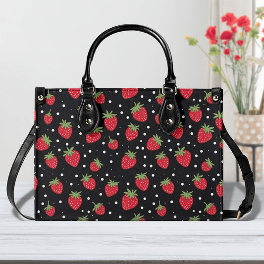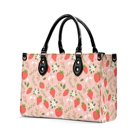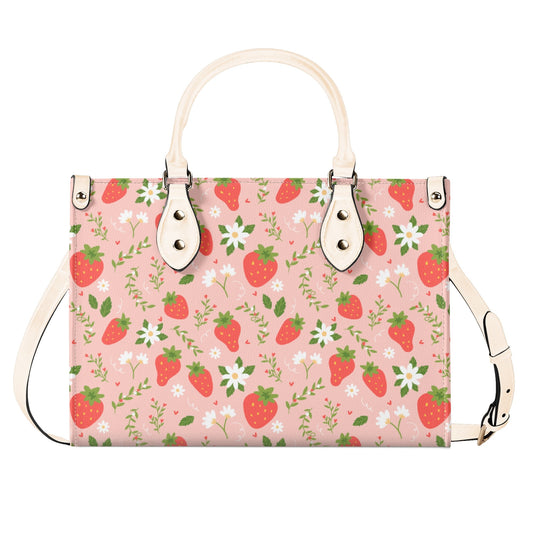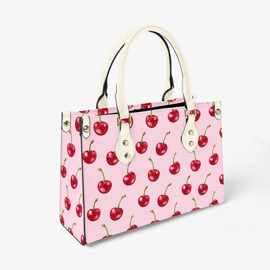 Red Cherry Pink Shoulder Purse, Fun Fruit Kawaii Crossbody Vegan Leather Top Handle Handbag Print Small Large Bag Women Ladies Designer