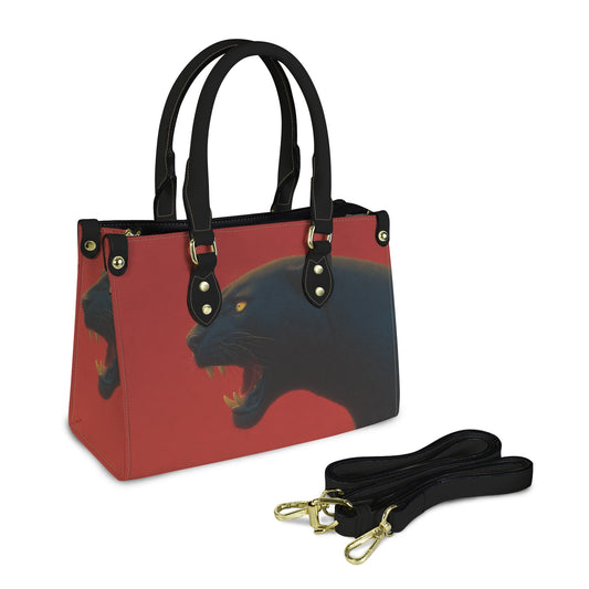 Black Panther Vegan Leather Crossbody Purse Women, Red Animal Small Handbag Shoulder Bag Ladies Zip Strap Designer Cross Body