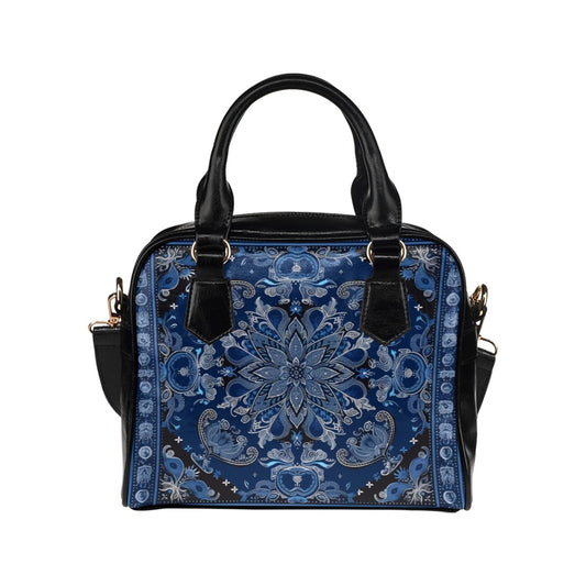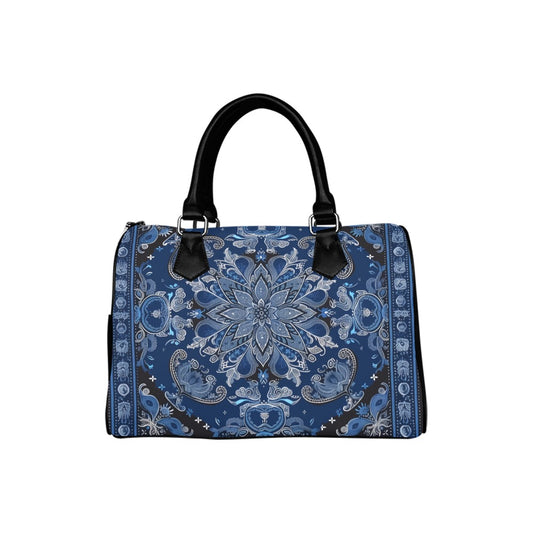 Bandana Purse Handbag, Blue Black Vegan Leather Designer Women Gift Satchel Top Zip Handle Bag Shoulder Crossbody Strap