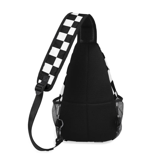 Checkered Chest Crossbody Sling Bag with Adjustable Strap, Black White Check Racing Men Women Ladies Backpack Purse Travel Shoulder Canvas